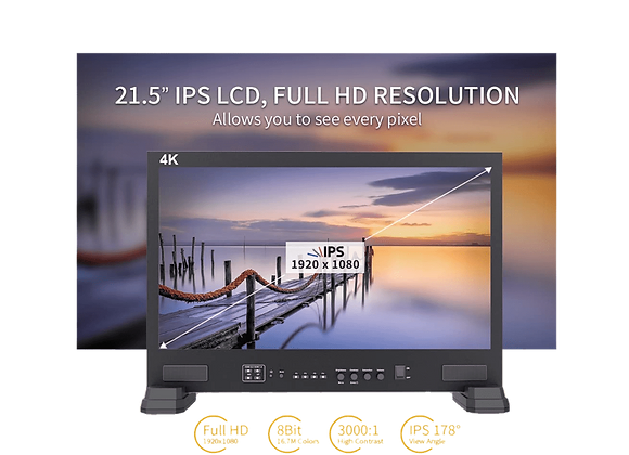 - Écran Full HD 21,5" avec support des signaux jusqu’à la 4K (monitoring polyvalent)