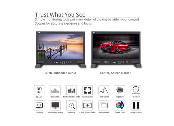 Il est équipé de deux entrées HDMI, une entrée SDI et une sortie SDI pour pouvoir afficher sur un second moniteur à proximité. Des Luts sont importables afin d’afficher un signal plus lisible si la caméra envoie un flux en profil d’image Log.