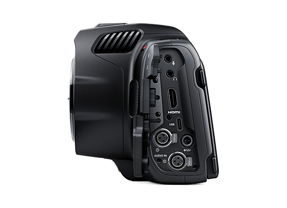 Elle conserve de nombreuses options de la Pocket Cinema Camera 6K, y compris les emplacements de carte CFast et SD, mais ajoute des fonctions plus professionnelles telles qu'une deuxième entrée audio mini-XLR.