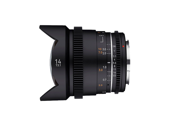Cette série Samyang VDSLR MkII inclut les focales les plus couramment utilisées : 24, 35, 50, 85mm et inclut en très grand angle un 14mm. Compacts et légers, ces objectifs cinéma sont plaisants à utiliser et offrent une expérience de tournage rapide et efficace. Le traitement multicouches des lentilles réduit les flare et les aberrations chromatiques tandis que l’ouverture à T1,5 et la construction optique délivrent une belle qualité d'image.